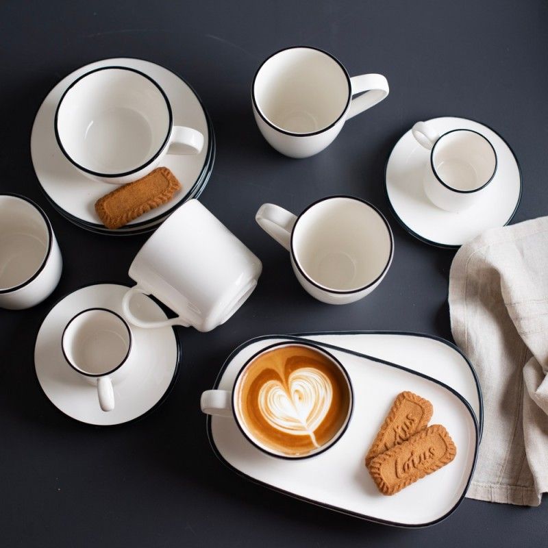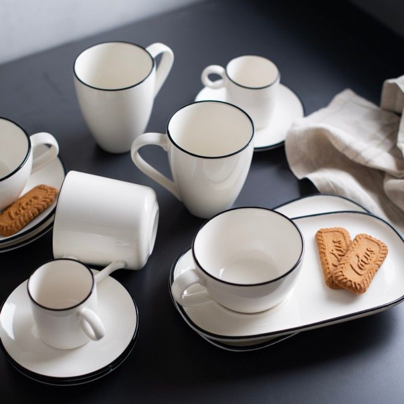 Фарфоровая кружка 300мл, подходит для подачи кофе или чая. Белая кружка с черной каймой от бренда ID Fine. Выполнена из профессионального ресторанного фарфора, отличается прочностью и стильным минималистичным дизайном. Универсальный выбор для кафе, ресторанов и гостиниц. Входит в базовую коллекцию Modest.