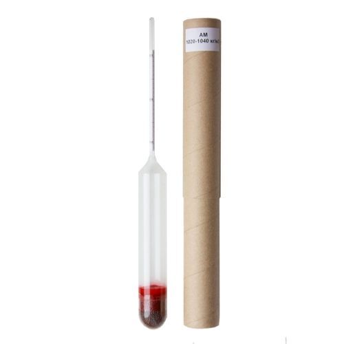 Ареометр АМ для молока – это стеклянный измеритель плотности цельного и обезжиренного молока, сыворотки, пахты. Ареометр АМ позволяет определять плотность молока в диапазоне от 1020 до 1040 кг/м3. По сути, ареометр для молока АМ – это поплавок со шкалой, его нужно опустить в сосуд с молоком (предварительно перемешанным) при температуре около 20°С, придерживать прибор, пока он примет свое окончательное положение, а окружающее молоко перестанет трястись. Теперь ареометр отпускаем таким образом, чтобы он находился в центре сосуда и не касался стенок и дна. Смотрим на шкалу и выясняем плотность цельного и обезжиренного молока, сыворотки, пахты. Ареометр для молока АМ полностью соответствует ГОСТ 18481-81