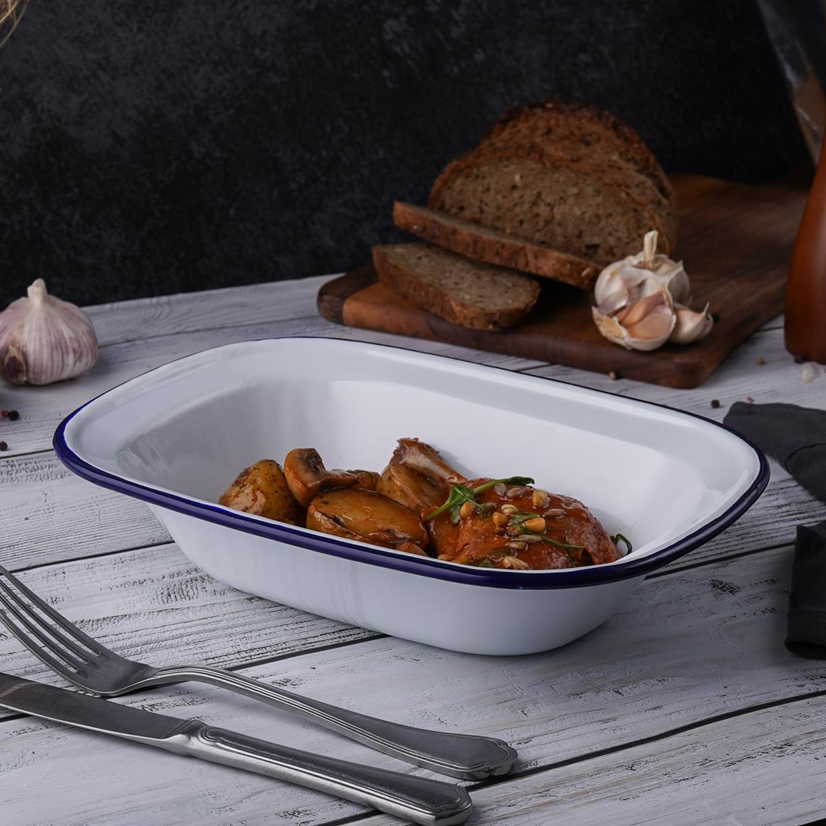 Блюдо эмалированное 26*19*5.5 см, «Blue Rim» P.L.