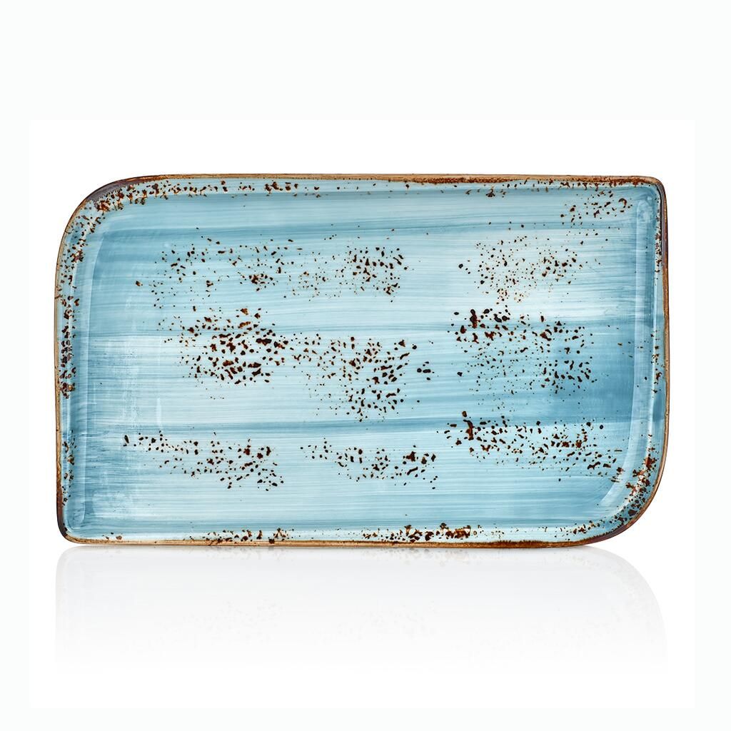 Тип посуды: блюдо; Серия: Infinity; Материал: фарфор; Форма: прямоугольная; Основной цвет: голубой; Размер, мм: 350х160;