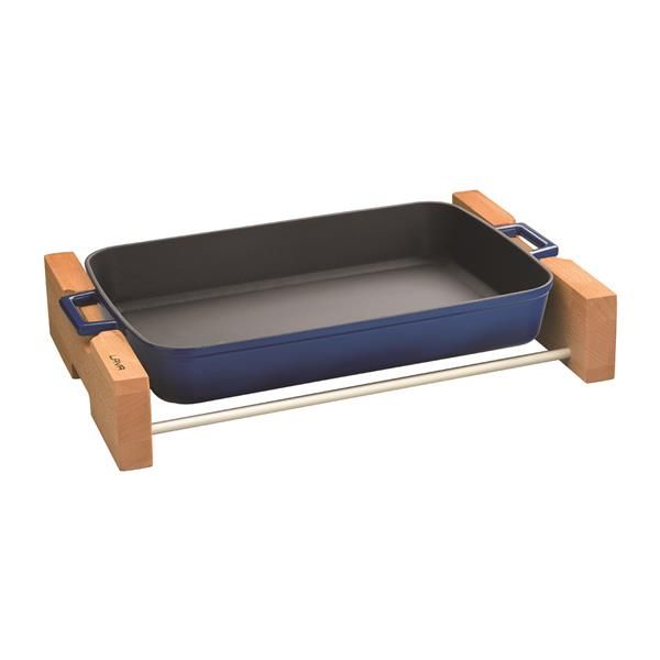 Блюдо прямоугольное с деревянной подставкой 26x40cm.