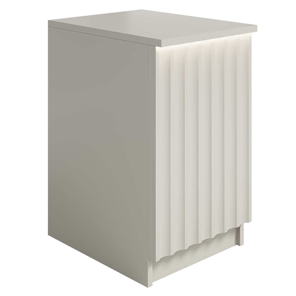 Габариты (ШхГхВ) : 504х654х865 мм ; Материал корпуса : ЛДСП 16 и 25 мм., кромка ПВХ 2 и 0,4 мм.; Материал фасада : ЛДСП 16 мм., кромка ПВХ 2 мм., МДФ 32 мм. с фрезировкой, отделка ЛКМ - покраска по RAL Classic ; Столешница : ЛДСП 25 мм; Подсветка : LED (дополнительная опция);
