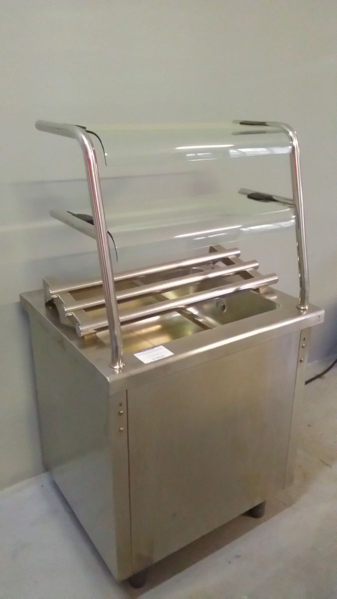 Состояние товара : хорошее; Причина уценки : б/у; Габаритные размеры : 800х700х900 мм; Направляющие для подносов : есть; Полки : 2 шт; Гастроемкости : 2шт GN1/1; Система управления : электромеханическая; Материал корпуса : нержавеющая сталь; Материал передней панели : нержавеющая сталь; Тип установки : напольная; Напряжение : 230 В; Мощность : 0.5 кВт; Цвет : серебристый; Вес : 70 кг;