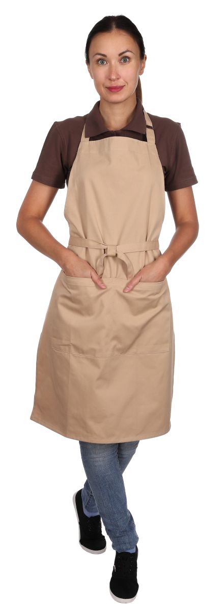 Состав ткани: хлопок 100%; Плотность ткани: 210 г/м²; Размер фартука: 650х950 мм; Особенности: водоотталкивающая пропитка, пряжка для регулировки лямки на шее; Ткань: Грета; Размер кармана: 230х400;