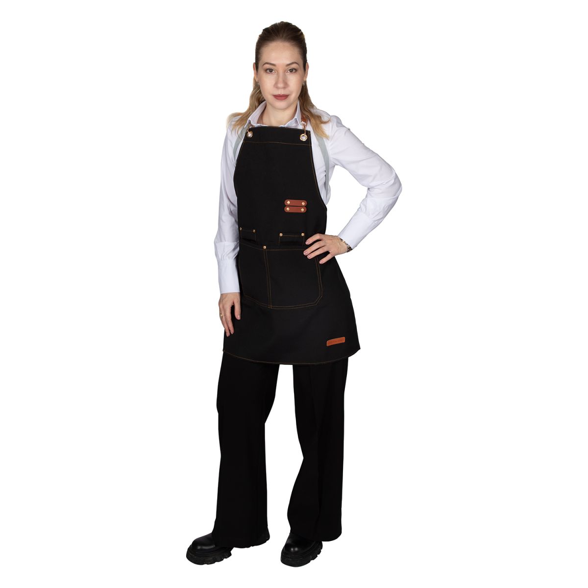 Ткань : Форвард ; Состав : 30% хлопок, 70% полиэстер ; Плотность : 240 гр ; Высота фартука : 800 мм ; Обхват : 670 мм ; Карман : 340х180 мм; Размер кармана : 80х150 мм, 2 шт;
