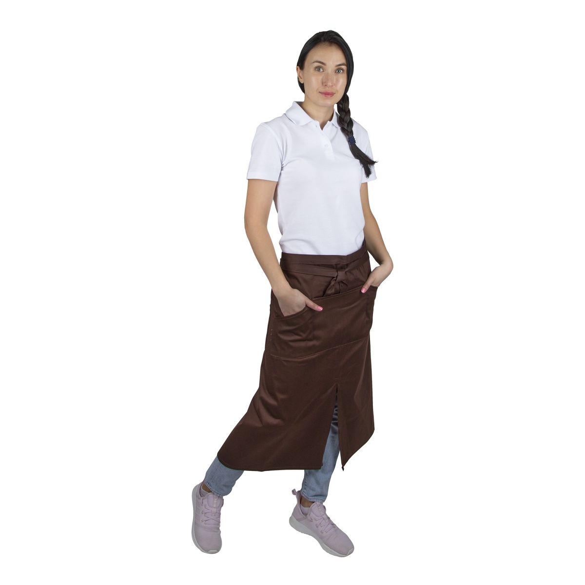 Фартук официанта длинный коричневый ХЛОПОК [00302]