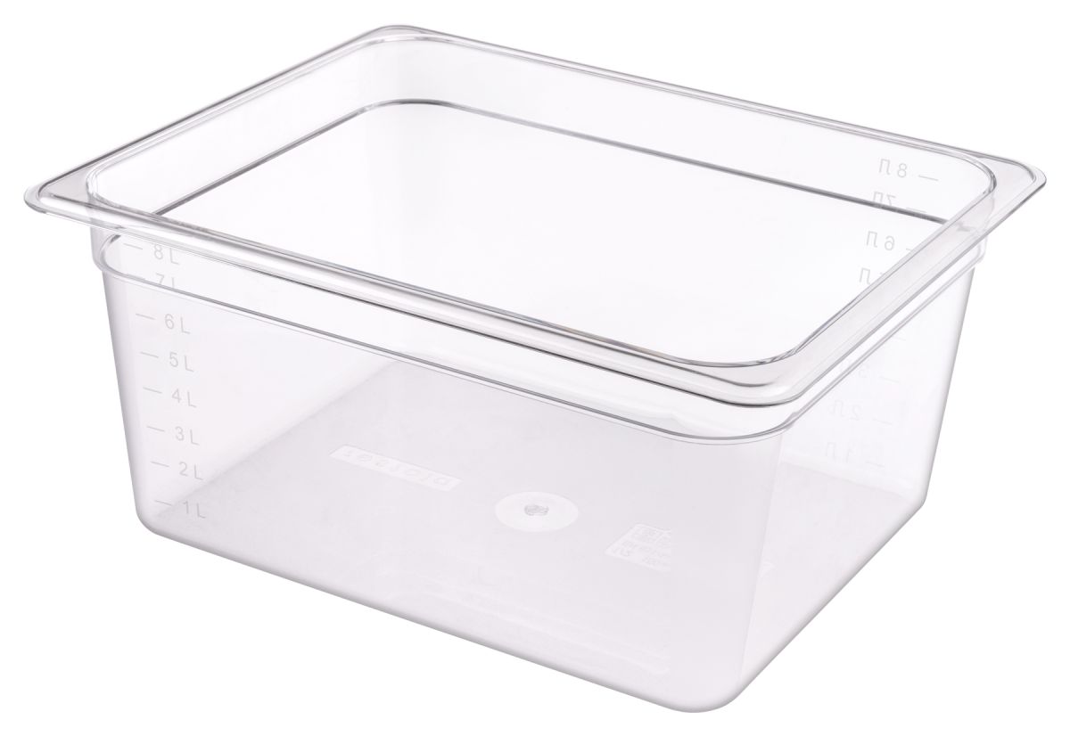 Тип: Гастроемкость; Объем, л: 9,5; Размер GN: GN1/2; Длина, мм: 325; Ширина, мм: 265; Глубина, мм: 150; Цвет: прозрачный;