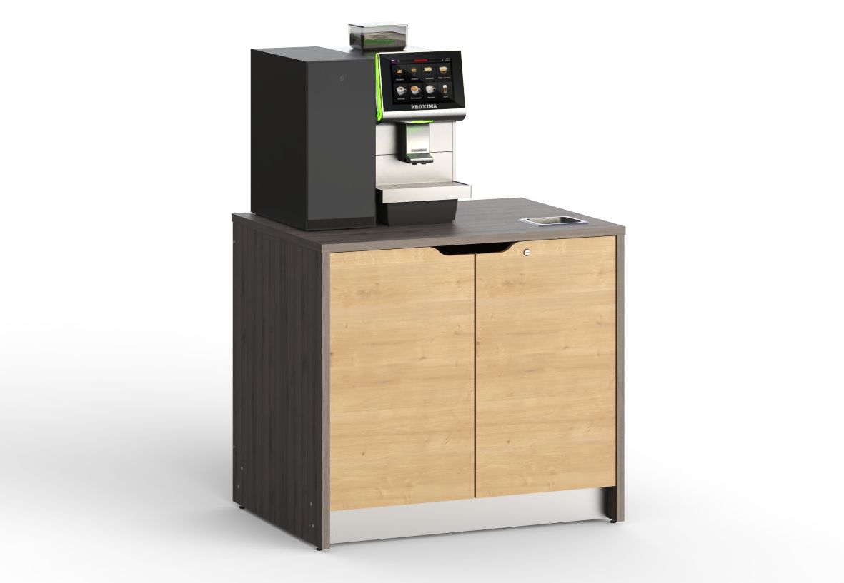 Габариты (ШхГ) : 996х750 мм ; Высота : 900 мм ; Назначение : Кофе-модуль самообслуживания ; Тип : напольный пристенный / островной ; Материал : ЛДСП Egger, нержавеющая сталь ; Декоры : фото складской программы размещены ниже ; Вес : 61 кг;
