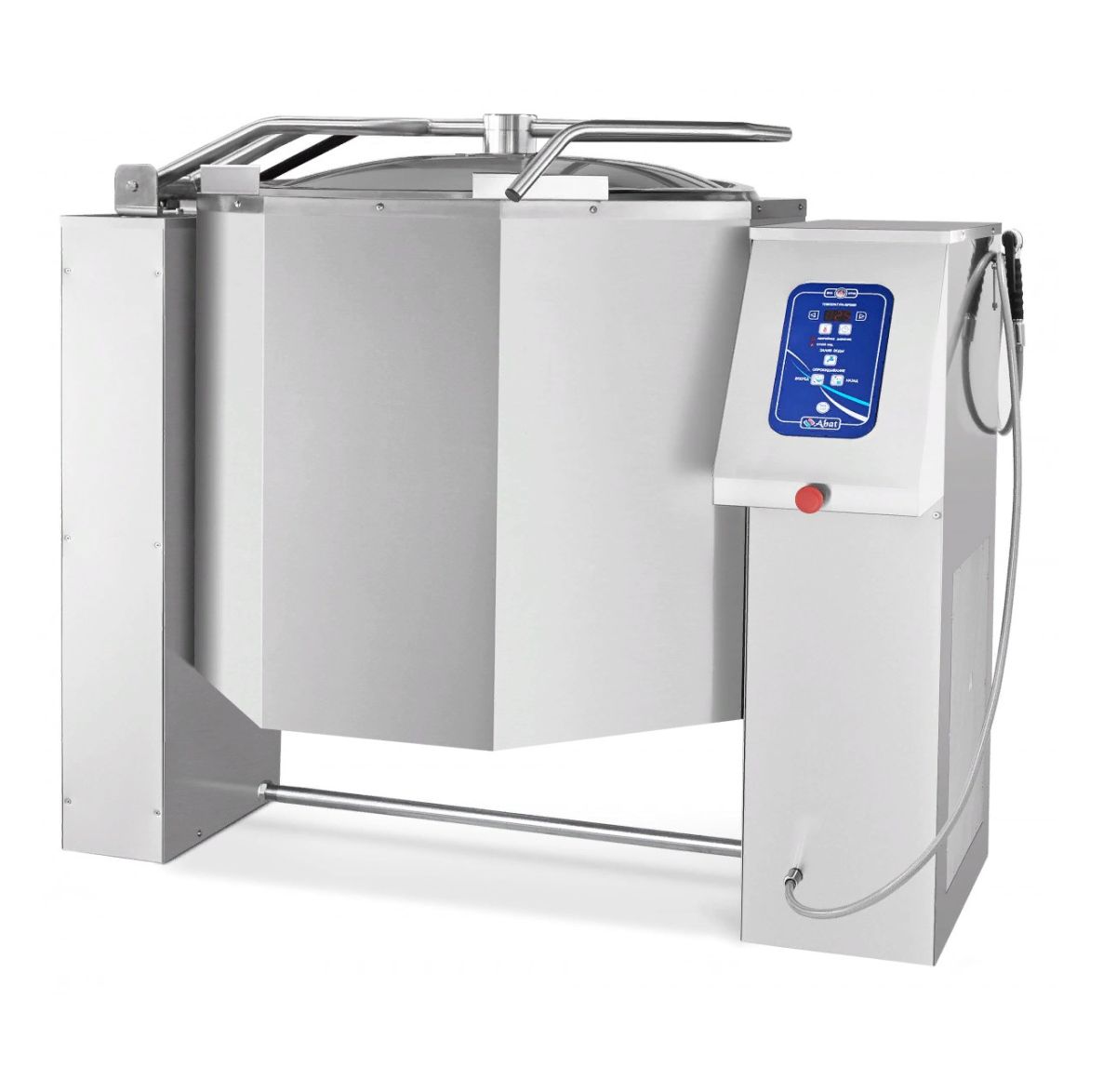 Питание: 380; Мощность, кВт: 27,2; Обьем, л: 250; Конструкция: опрокидывающийся; способ нагрева: косвенный (пароводяная рубашка); Опрокидывание: электропривод; Миксер: Да; Сливной кран: Да; T max, °C: 110; T min, °С: 30; Диаметр котла, мм: 790; Габаритные размеры, мм: 1510х1061х1306;