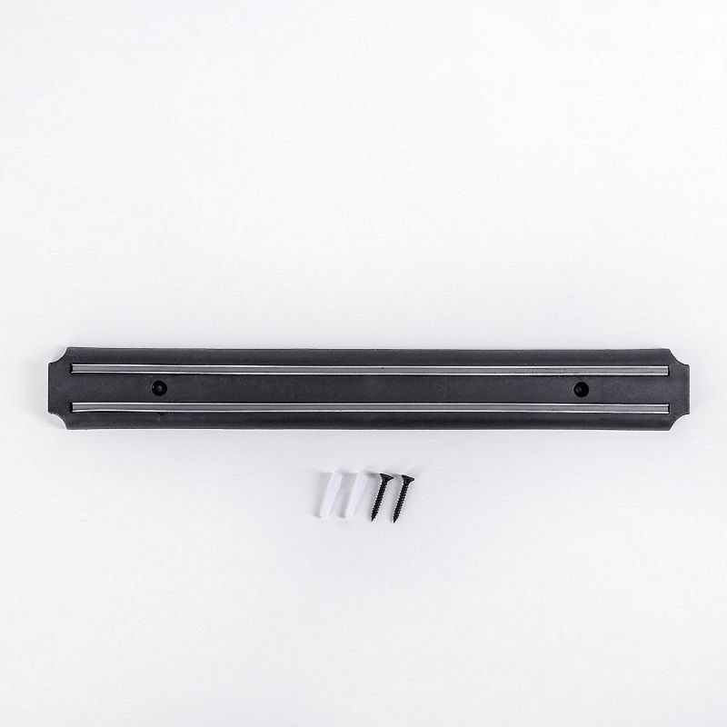 Магнитный держатель для ножей помогает грамотно распределить свободное пространство на кухонном столе. Дизайн аксессуара лаконичный: внешне он выглядит как магнитная планка, которая притягивает лезвия ножей. Изделие надежно крепится на стену, в горизонтальном положении. Такое хранение режущих предметов обеспечивает сохранность качества лезвий, а также устраняет риск касания их друг с другом. Ножи крепятся надежно и не соскальзывают. Изделие выполнено из нержавеющей стали, материала, который не ржавеет, не тускнеет и долгое время не теряет первоначального внешнего вида. Материал: нержавеющая сталь, пластик.