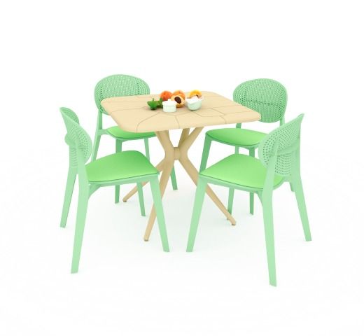 Габариты стола (ШхГхВ) : 835х835х760 мм; Габариты стула (ШхГхВ) : 530х560х830 мм; Высота от пола до сиденья стула : 470 мм; Материал стола : армированный пластик; Материал стула : армированный пластик;