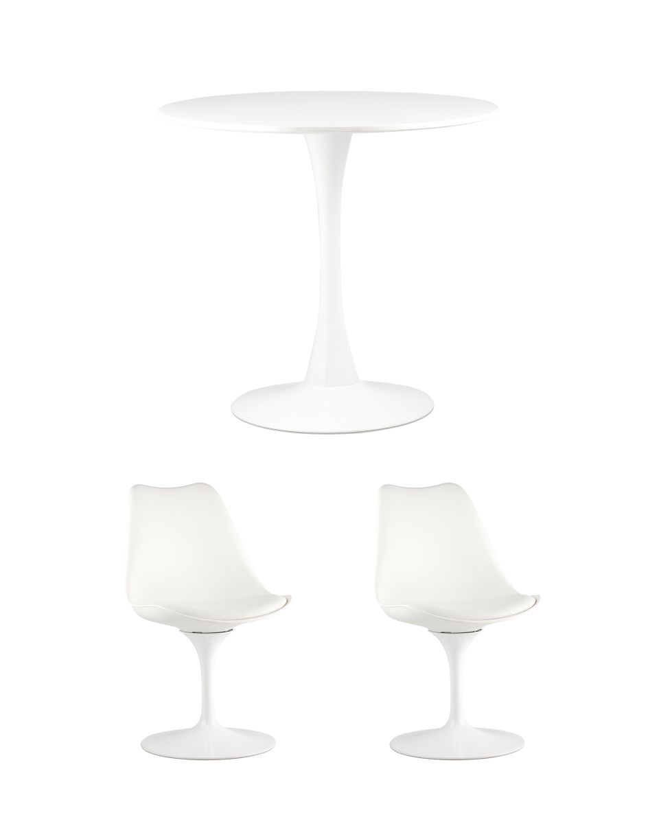 Габариты стола (ДхВ) : 800х730 мм ; Габариты стула (ШхГхВ) : 480х430х800 мм ; Высота от пола до сиденья стула : 410 мм ; Материал столешницы : мдф белый ; Материал сиденья стула : пластик + экокожа ; Материал ножки стола и стула : металл ; Цвет стула : белый ; Нагрузка стула : 160 кг;