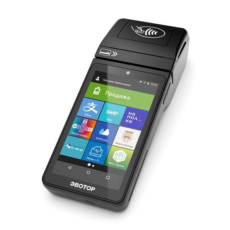 Автоотрезчик : нет ; Подключение к интернету : Wi-Fi, 3G, Bluetooth ; Интерфейсы : USB ; Диагональ дисплея : 5.5" ; Разрешение : 1280х720 ; Операционная система : Android ; Программное обеспечение : EvotorPOS ; Габаритные размеры : 86х223х54 мм ; Вес : 393 г ; Гарантия : 12 месяцев ; Производитель : Эвотор ; Поддерживаемые банки : эквайринг от банка Русский Стандарт (расчетный счет может быть в любом банке) ; Поддерживаемые платежные системы : Visa, MasterCard, МИР ; Комплектация : Эвотор 5i смарт-терминал ФН, блок питания с сетевым кабелем, паспорт устройства, руководство по быстрому запуску ; Процессор компьютера : Mediatek MTK8321A, 1.3 GHZ; Объём оперативной памяти : 1 Гб; Объём физической памяти : 8 Гб; Дисплей : 5.5 дюймов, ёмкостный тип; Навигация : GPS, Glonass; Камера : две камеры по 5 Mп, автофокус, вспышка; Источник питания : внешний блок питания с кабелем Jack 2,5 5V,2,1A; Аккумулятор : до 12 часов автономной работы; USB host : 1 (с левой стороны корпуса); Работа с ОФД : совместим со всеми зарегистрированными операторами фискальных данных; Ширина ленты : 57 мм ; Скорость печати : 50 мм/cек.;