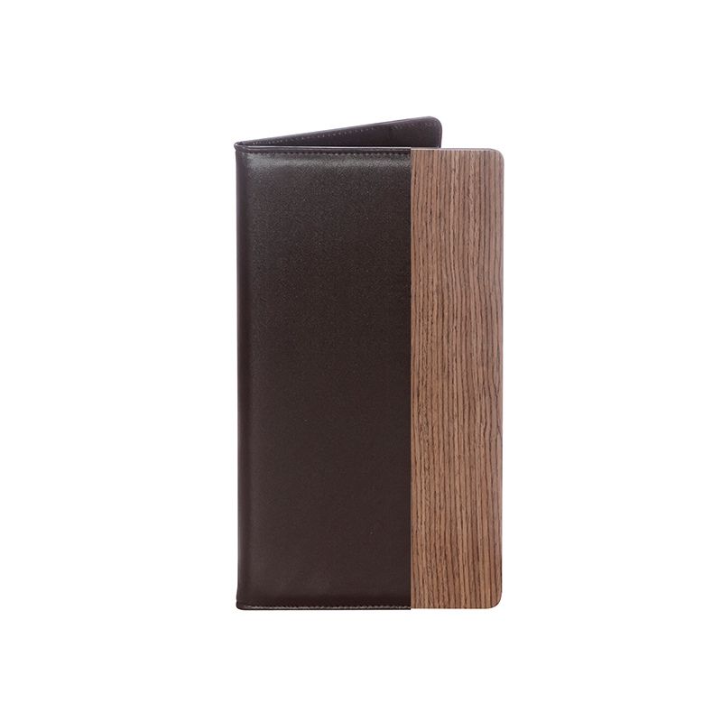 Папка для счетов гладкая с деревянной вставкой из искусственной кожи