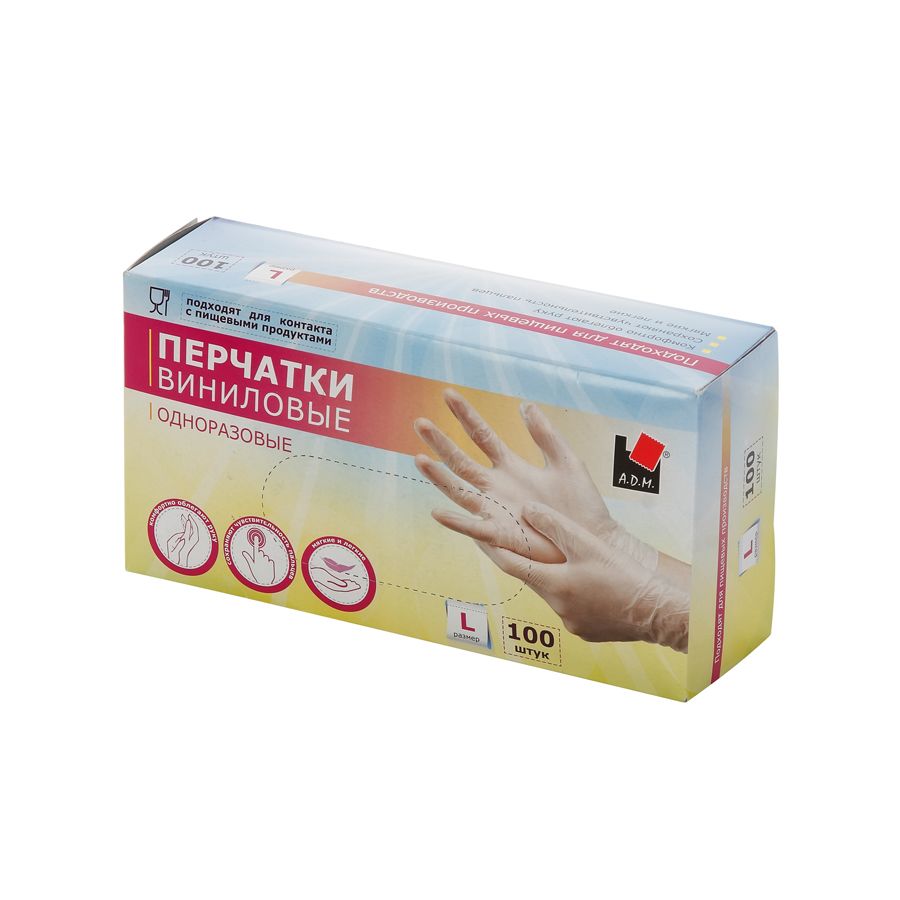 Перчатки виниловые одноразовые 100 шт размер L