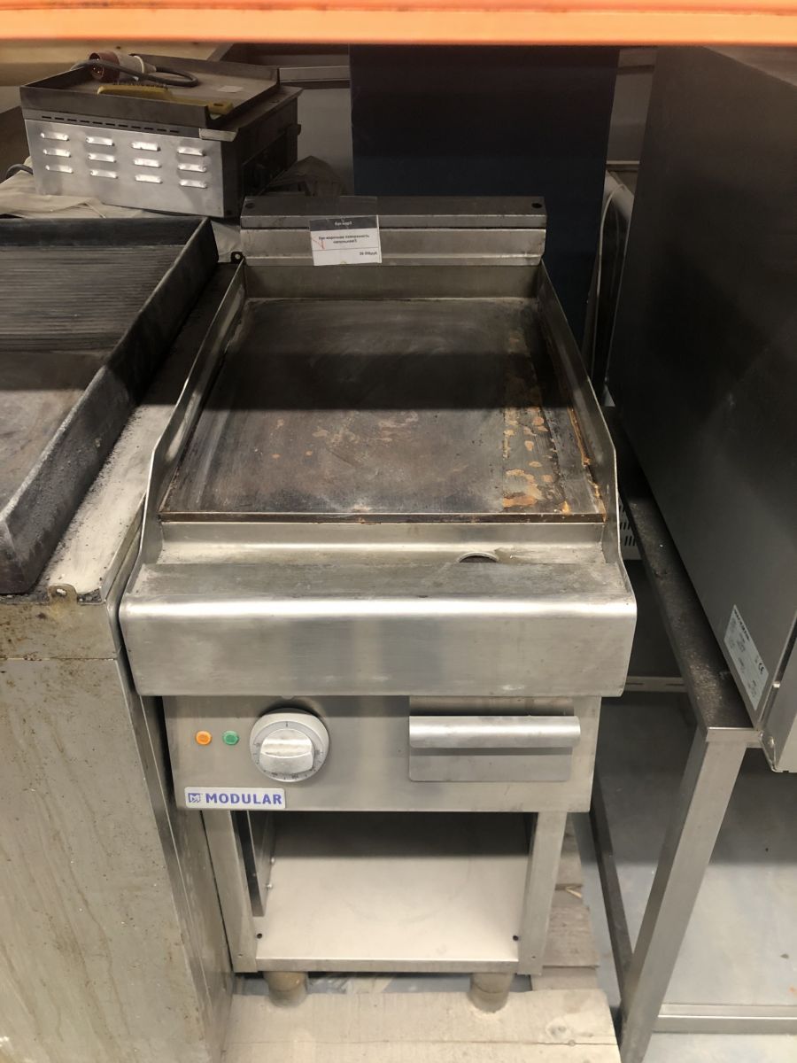 Состояние товара : хорошее; Причина уценки : б/у; Производитель : Modular; Габаритные размеры : 400х700х850 мм; Рабочие температуры : 50....+300 °C; Страна : Италия; Форма поверхности : гладкая; Напряжение : 380 В; Мощность : 4,5 кВт; Управление : электромеханическое; Тип поверхности : гладкая; Мощности конфорок : 4,5 кВт; Вес : 45 кг;