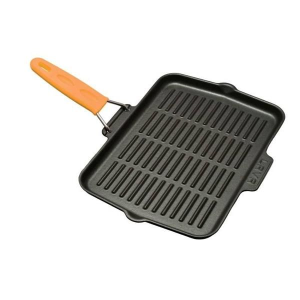 Сковорода -гриль, чугун, 21х36 см с желтой силиконовой ручкой