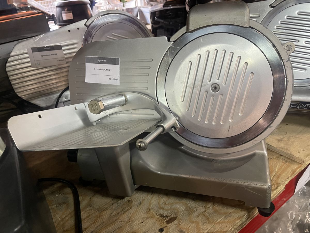 Состояние товара : отличное; Вес (без упаковки) : 14 кг ; Габаритные размеры : 480х363х365 мм; Материал ножа : тефлон ; Материал корпуса : лакированный алюминий ; Мощность : 0.14 кВт ; Напряжение : 220 В ; Толщина нарезки : от 0 до 15 мм ; Диаметр ножа : 250 мм ; Тип управления : полуавтоматический ; Причина уценки : б/у; Страна производства : Италия;
