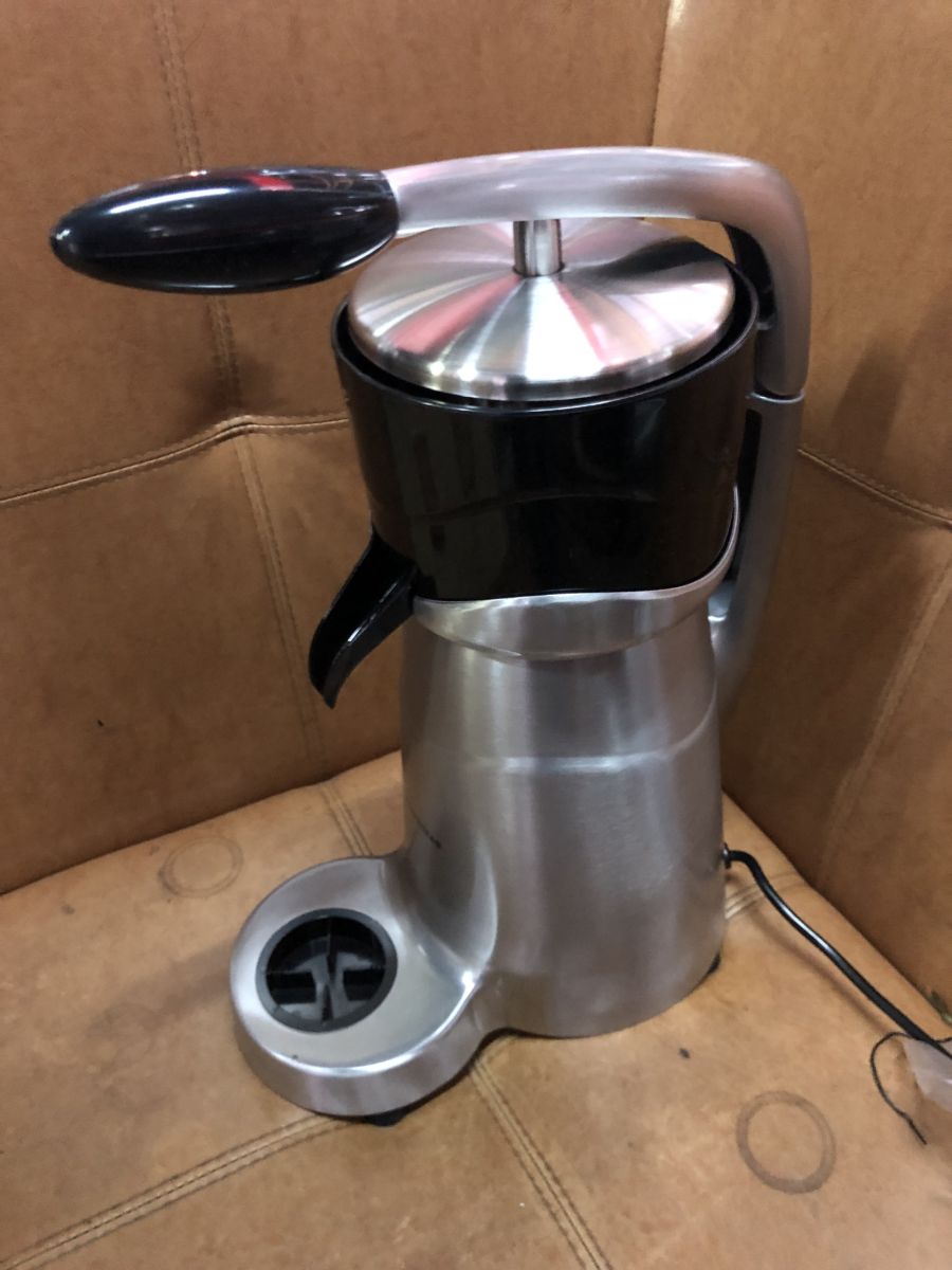 Состояние товара : новый; Цвет : металл, черный ; Вес (без упаковки) : 5.7 кг ; Габаритные размеры : 340х240х420 мм; Мощность : 0.23 кВт ; Напряжение : 220 В ; Материал корпуса : алюминий ; Скорость вращения : 1800 об/мин. ; Разновидность : электрическая ; Использование : для цитрусовых ; Причина уценки : выставочный образец; Страна производства : Китай;