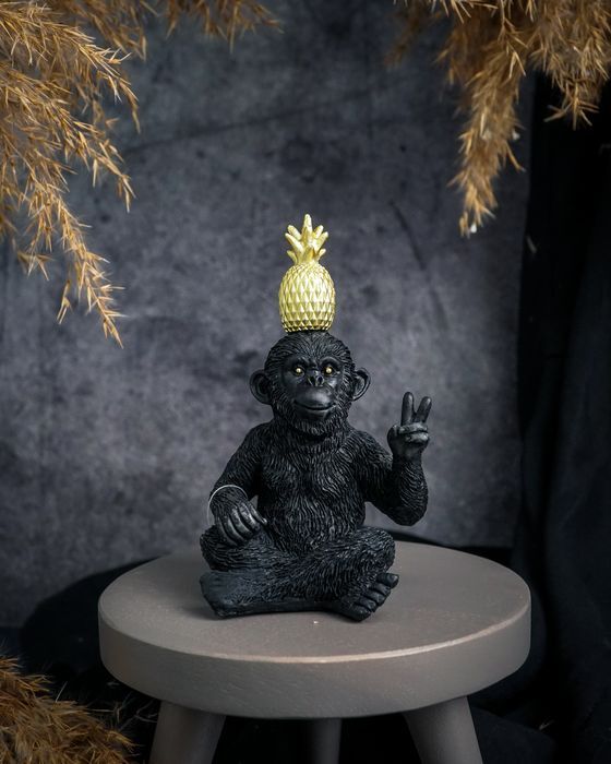 Статуэтка «Обезъяна с ананасом», полимер. Цвет черный/золотой, 7x6xh13см