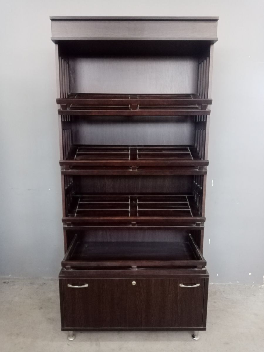 Состояние товара : новый; Причина уценки : выставочный экземпляр, кол-во 1шт; Тип : открытый ; Оснащение : полка решетка ; Материал : ЛДСП Венге Цаво ; Габаритные размеры : 1000х500х2150 мм; Вес : 90 кг ; Страна производства : Россия;
