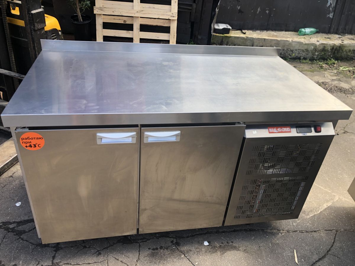 Состояние товара : отличное; Причина уценки : б/у; Расположение агрегата : сбоку ; Температурный режим : от -2 до 10 °С ; Объем : 350 л ; Рабочая поверхность : нерж. сталь ; Тип : гастронормированный; Количество дверей : 2 ; Напряжение : 220 В ; Мощность : 0.22 кВт ; Ширина : 1390 мм ; Глубина : 700 мм ; Высота : 850 мм ; Вес : 150 кг ; Столешница : с бортом; Страна производства : Россия;