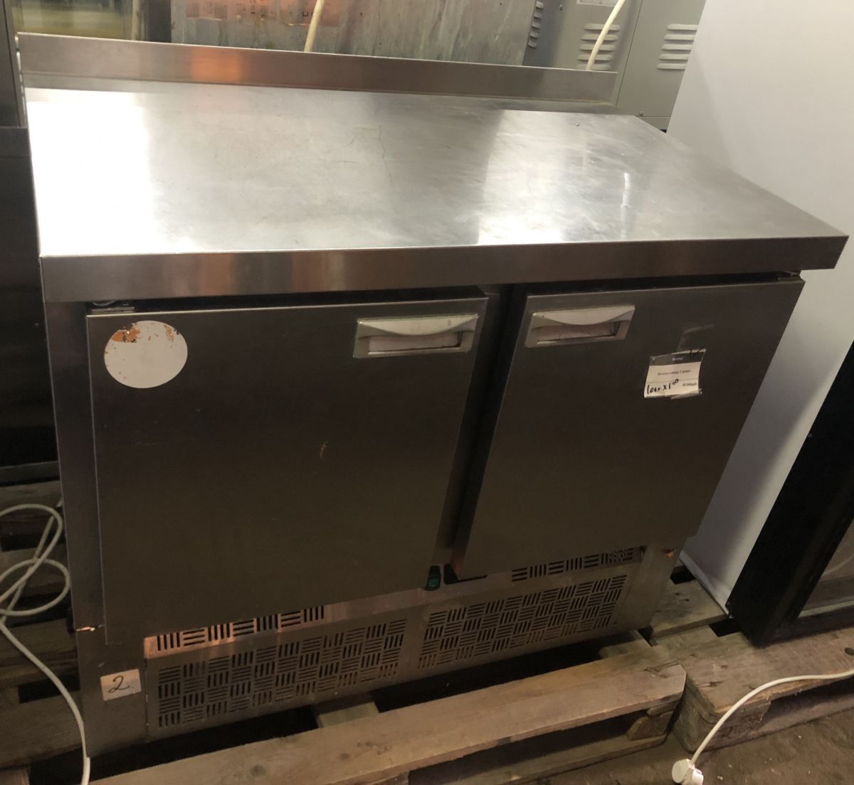 Состояние товара : без полок; Причина уценки : б/у; Расположение агрегата : снизу ; Температурный режим : от -2 до 10 °С ; Объем : 210 л ; Рабочая поверхность : нерж. сталь ; Количество дверей : 2 ; Столешница : с бортом ; Напряжение : 220 В ; Мощность : 0.15 кВт ; Габаритные размеры : 1000х600х850 мм; Вес : 121 кг;