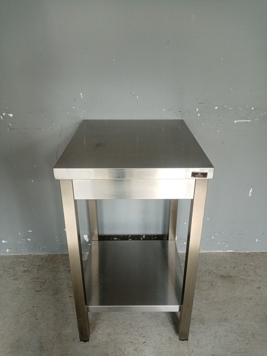 Состояние товара : отличное; Причина уценки : б/у; Тип : открытый, рабочий ; Установка : пристенный ; Борт : да; Оснащение : полка ; Материал каркаса : нерж. сталь ; Материал столешницы : сталь ; Профиль ножек : квадратная труба ; Габаритные размеры : 500х500х850 мм; Вес : 16 кг; Страна производства : Россия;