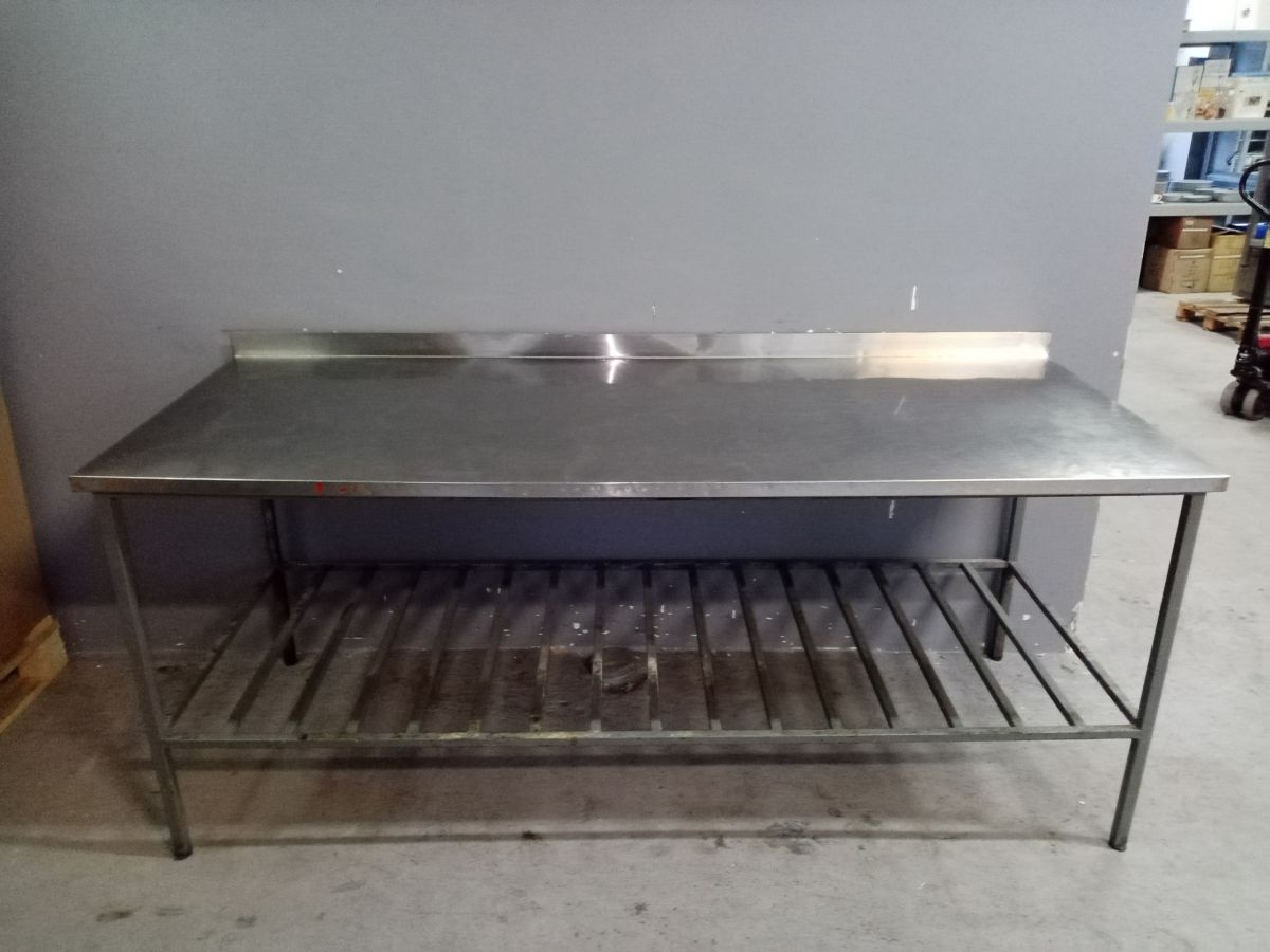 Тип : открытый, рабочий ; Установка : пристенный ; Борт : да; Оснащение : решетка ; Материал каркаса : окрашенная сталь ; Материал столешницы : нерж.сталь ; Габаритные размеры : 2000х800х850 мм; Страна производства : Россия; Состояние товара : хорошее; Причина уценки : б/у;