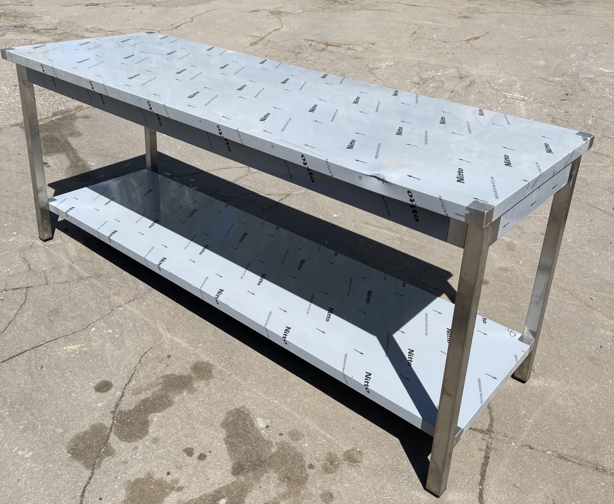 Состояние товара : новый; Причина уценки : косметические дефекты на корпусе; Габаритные размеры : 2000х700х850 мм; Съемный борт : да; Ножки : труба 40х40 AISI 430; Столешница : AISI 430; Полка : сплошная AISI 430; Фанера : 16 мм;
