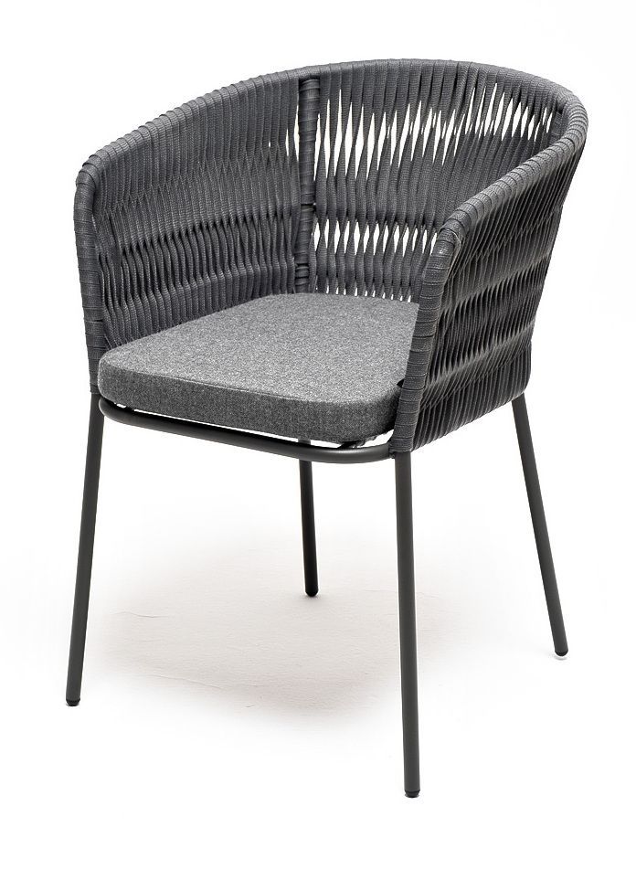 Габариты товара (ДхШхВ) : 570×620×775 мм; Материал ткани : полиэстер 100% плотностью 300гр/м2 с влагоотталкивающей пропиткой; Высота сидения : 490; Фактура покрытия каркаса : муар; Цвет каркаса/ткани : темно-серый (RAL7024)/темно-серый; серый (RAL7022)/серый; Материал каркаса в сером цвете : сталь; Материал каркаса в темно-сером цвете : алюминий; Вид роупа : плоский 15 мм, плетение «колос»; Цвет плетения : серый; Материал плетения : эластичные ленты из высокопрочных полиэфирных волокон (роуп); Габариты упаковки (ДхШхВ) : 670×770×850 мм; Вес (Нетто) : 4 кг (в темно-сером цвете), 11 кг (в сером цвете);