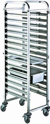 Количество уровней: 15; Расстояние между уровнями, мм: 85; Размер противней/подносов: GN1/1; Материал: нерж. сталь; Вместимость: 15; Тормоза на колесах: Да; Габаритные размеры, мм: 380х550х1735;