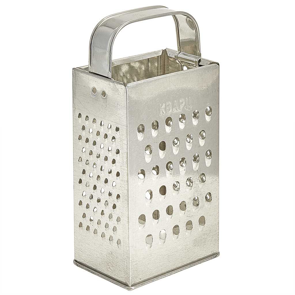 Терка предназначена для измельчения пищевых продуктов: овощей, сыра и других. Четырехгранная терка из белой жести оснащена удобной ручкой. Размер: 8,5*6,2*18,2 см. Материал: белая жесть (толщ. 0,25-0,28 мм.).