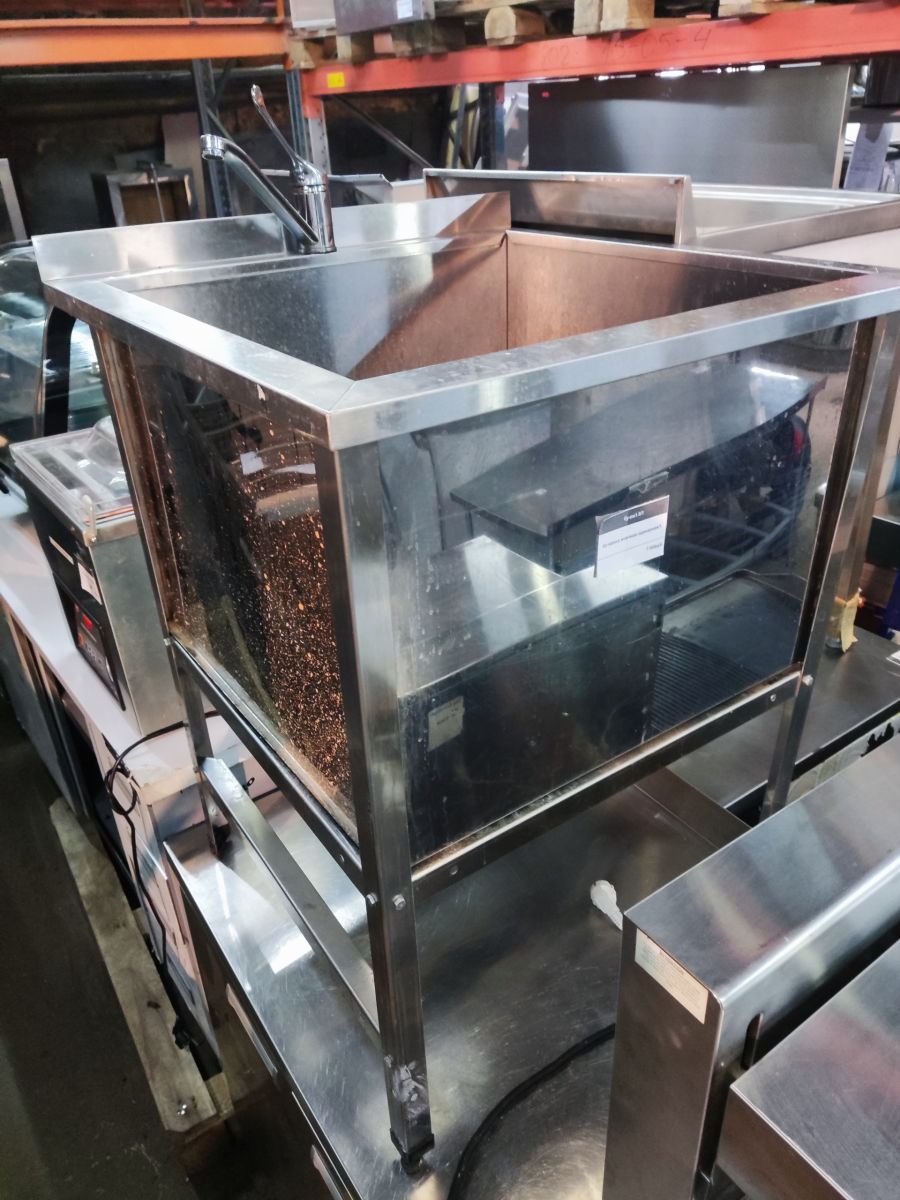 Состояние товара : отличное; Причина уценки : б/у; Каркас : нержавеющий уголок; Габаритные размеры : 700х700х850 мм; Отверстие под смеситель : есть; С бортом : да;