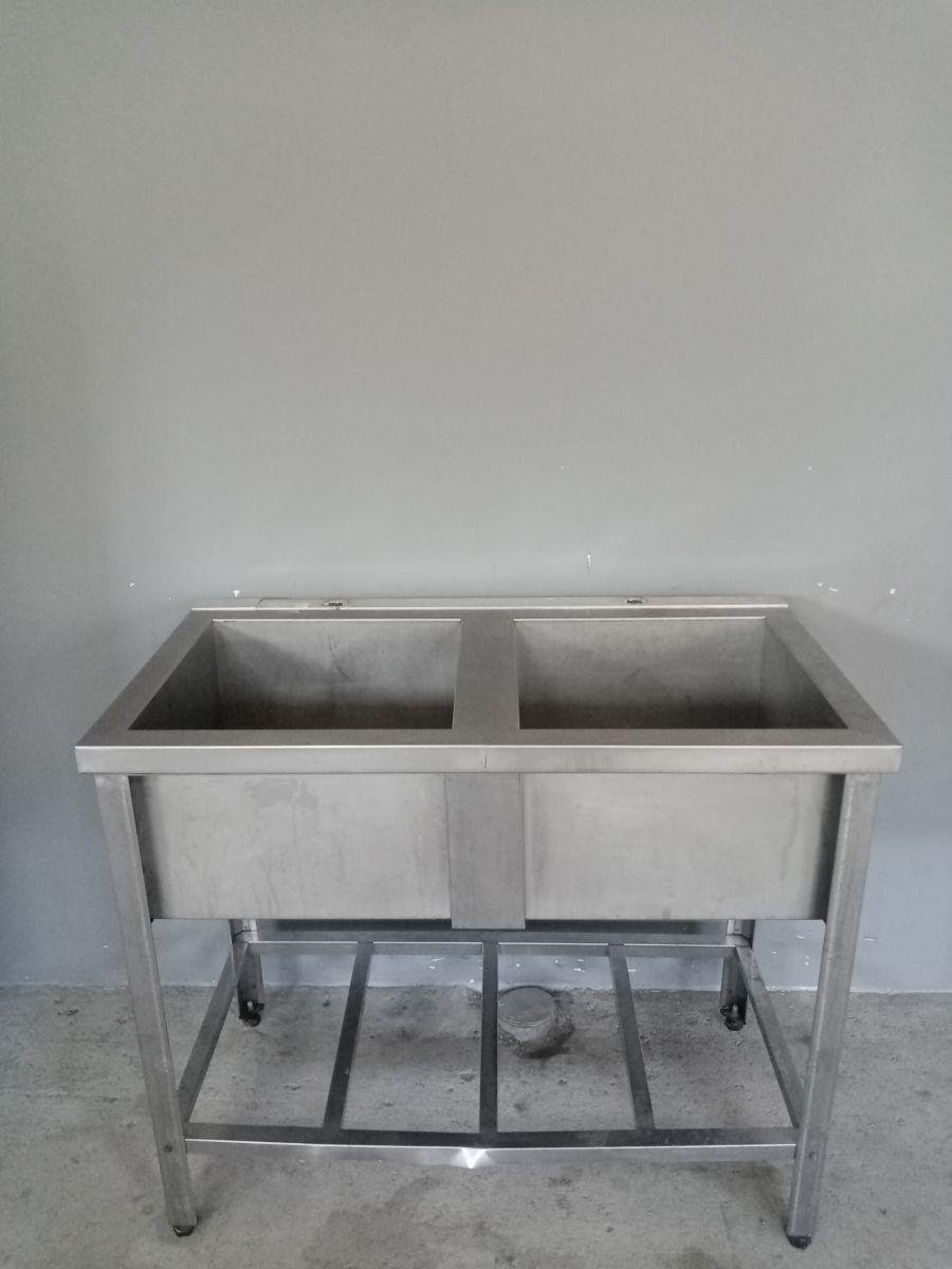 Состояние товара : хорошее; Причина уценки : б/у; Установка : напольная ; Разновидность : открытая ; Тип мойки : сварная ; Материал каркаса : нерж. сталь ; Материал ванны : нерж. сталь ; Количество раковин : 2 ; Рабочая поверхность : нет ; Обвязка : да; Размеры раковины (ДхШхВ) : 480х480 мм ; Глубина раковины : 300 мм ; Габаритные размеры : 1050х600х850 мм; Страна производства : Россия ;